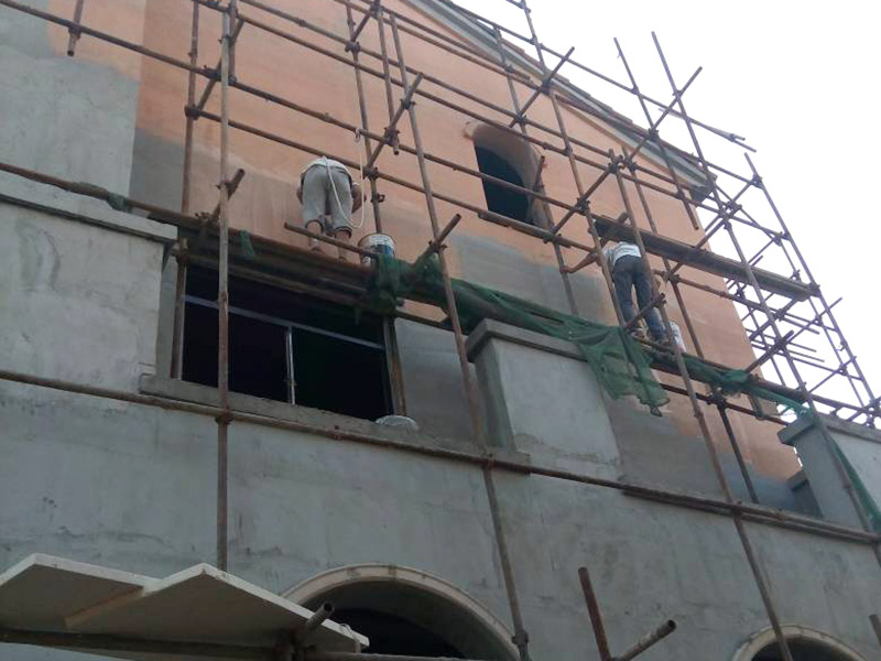 外墻涂料施工工藝:1、磨去:打磨拋光務必在農村基層或膩子粉干躁后開展,不可以濕磨以防黏附打磨砂紙危害實際操作。打磨砂紙的大小要依據被磨表層的強度而定,打磨砂紙粗了會造成砂痕,危害鍍層的終裝飾設計實際效果。打磨拋光時先用粗砂紙或電動打磨機打磨拋光,再用細沙布打磨拋光,留意表層的整平性。打磨拋光后,馬上消除表層塵土,以利于下一道工藝流程的施工。2、貼玻璃纖維布:選用網紗相對密度勻稱,不能用過密的玻纖維布開展鋪貼。3、修復:施涂前針對基材的缺棱掉角處、孔眼等缺點選用1:3混合砂漿(或高聚物混合砂漿)修復。4、清理:灰塵、粉末狀可應用掃把、刷子、髙壓水清洗,植物油脂──應用中性清洗劑清理;砂漿──用鏟、刮板等去除;黃曲霉菌──戶外髙壓水清洗,用冷水浸洗晾曬。5、彌補膩子粉,部分批膩子:假如墻面整平、光潔,并不應用膩子粉;膩子粉的規定除開易批易打磨拋光外,還應具有不錯的抗壓強度和持續性,在開展彌補、部分批膩子施工時規定,宜薄批而不適合厚刷。規定膩子粉應具有更強的粘結力,粘接持續性及耐磨性。6、批膩子再磨去:選用高聚物膩子粉刮整平,關鍵目地是為了更好地磨平貼玻璃纖維布造成的不整平狀況,避免表層的孔狀縫隙。7、建筑涂料刷涂:建筑涂料刷涂規定農村基層表層含水量不可超過8%,如如遇風大、雨、霧直到氣溫時不可開展整體面層建筑涂料的施涂;施工時規定依據設計方案規定做樣版墻,直至工程驗收時截止。