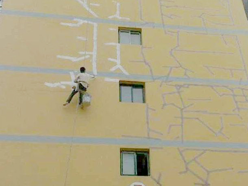 待封閉式面漆徹底干躁后,刷涂二遍外墻涂料。建筑涂料刷涂時嚴禁過多加水,特別是在是深色調的建筑涂料加水過多將會造成浮色發花等安全隱患。